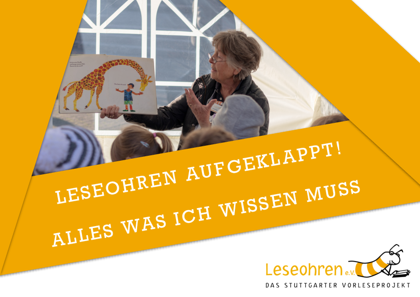 Die Leseohren-Broschüre wurde als selbstständiges Projekt unserer ehemaligen FSJlerin Felicia Weisser für angehende Vorlesepatinnen und -paten erstellt. Sie enthält nicht nur Informationen zu unserem Verein, sondern auch vielfältige Informationen rund ums Thema Vorlesen, die Gestaltung von Vorlesestunden sowie Insider-Tipps langjähriger Vorleserinnen und Vorleser.
